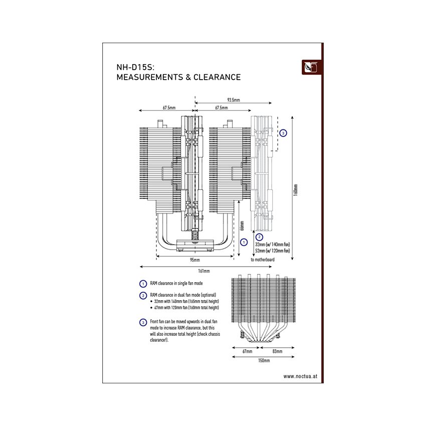 Được thiết kế để cung cấp khả năng tương thích RAM và PCIe vượt trội, NH-D15S là phiên bản quạt đơn không đối xứng của mẫu flagship từng đoạt giải thưởng của Noctua, NH-D15 . Nhờ thiết kế không đối xứng, NH-D15S xóa khe cắm PCIe hàng đầu trên hầu hết các bo mạch chủ của ATATX và ATX. Đồng thời, thiết lập quạt đơn và vây thấp hơn đảm bảo khả năng tương thích RAM 100% với các mô-đun bộ nhớ có chiều cao lên tới 65mm. Người dùng có đủ chỗ cũng có thể nâng cấp bộ làm mát với quạt 120mm hoặc tròn 140mm trên ngăn vây phía trước để cải thiện hiệu suất hơn nữa trong chế độ quạt kép. Đứng đầu với hệ thống lắp đa ổ cắm SecuFirm2 ™ đáng tin cậy, cấp độ chuyên nghiệp, NT-H1 đã được chứng minh của Noctua NH-D15S tạo thành một giải pháp chất lượng cao cấp hoàn chỉnh, kết hợp hiệu quả của tháp đôi với khả năng tương thích tuyệt vời và các tùy chọn nâng cấp linh hoạt.