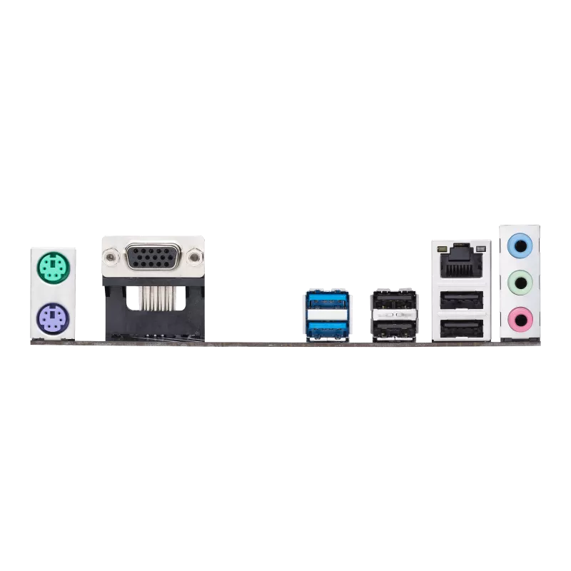 Cổng giao tiếp ngoài 2 x USB 3.2 Gen 1 ports (2 x Type-A) 4 x USB 2.0 ports (4 x Type-A) 1 x D-Sub port 1 x Realtek 1Gb Ethernet port 3 x Audio jacks 1 x PS/2 Keyboard (purple) port 1 x PS/2 Mouse (green) port