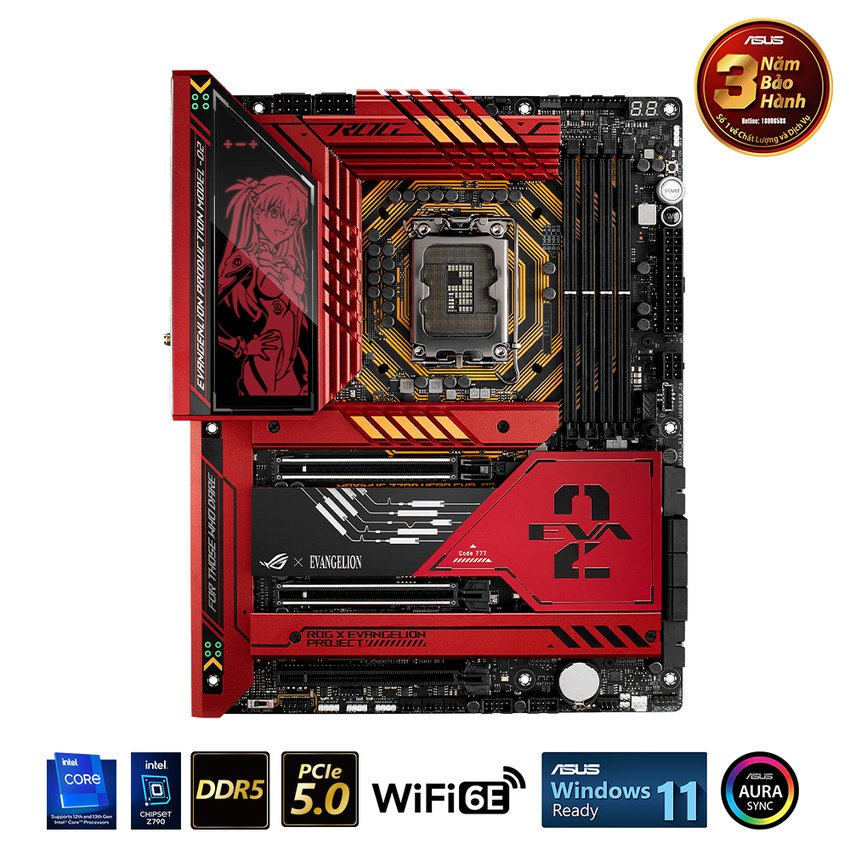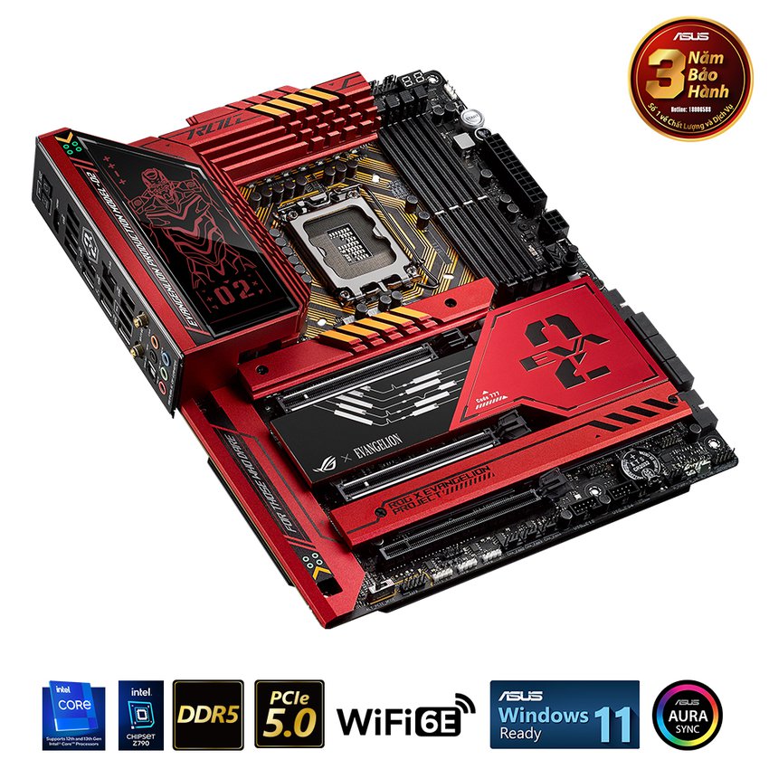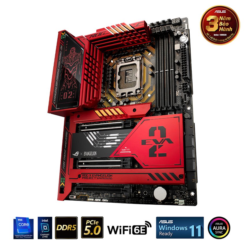 ROG Maximus Z790 Hero EVA-02 Edition là kết quả của sự hợp tác mới xoay quanh EVA-02 và Asuka của bộ anime Evangelion nổi tiếng từ lâu. Sau khi thu hút sự chú ý của bạn với chủ đề màu đỏ cam đặc trưng của EVA-02 và các vệt màu xanh lá cây, sự khởi sắc về mặt nghệ thuật tiếp tục xuất hiện: thiết kế AT Field bao quanh ổ cắm CPU và đèn Polymo trên nắp I/O chuyển đổi giữa Asuka và EVA thông thường -02. Thiết kế tấm ốp lưng thể hiện chế độ EVA-02 “The Beast” và các mẫu Evangelion, làm tăng thêm vẻ hấp dẫn về mặt hình ảnh của bo mạch chủ. Và với tư cách là bo mạch chủ ROG Maximus, nó cung cấp tất cả các tính năng mạnh mẽ, làm mát và linh hoạt cần thiết để nâng hiệu năng lên một tầm cao mới.