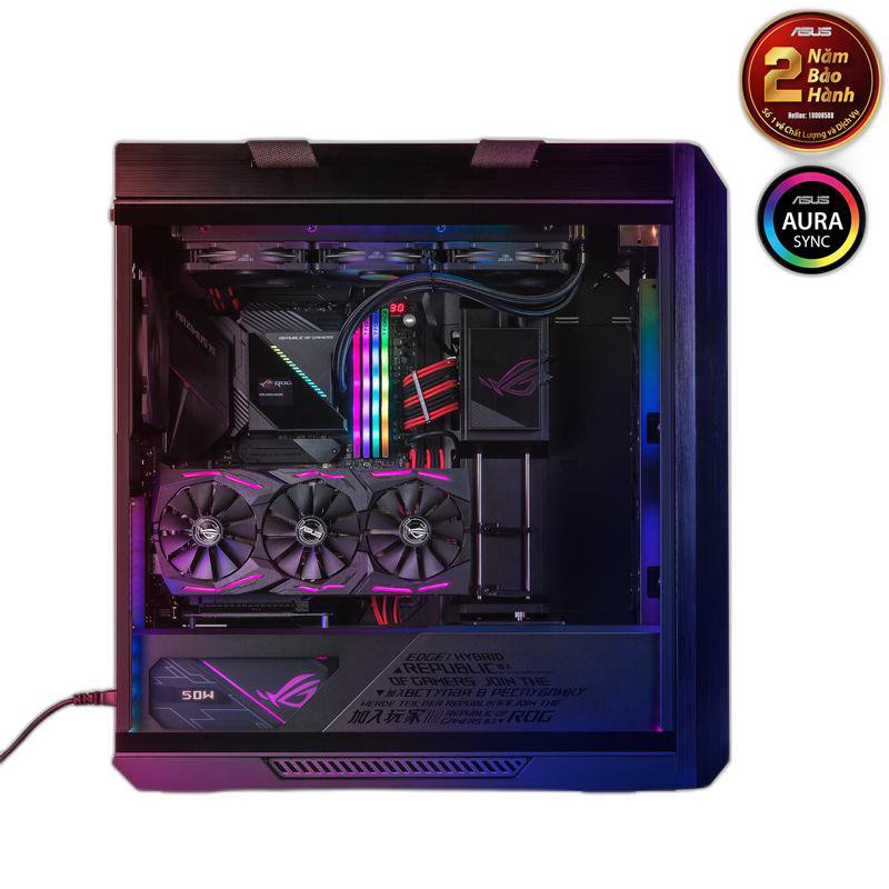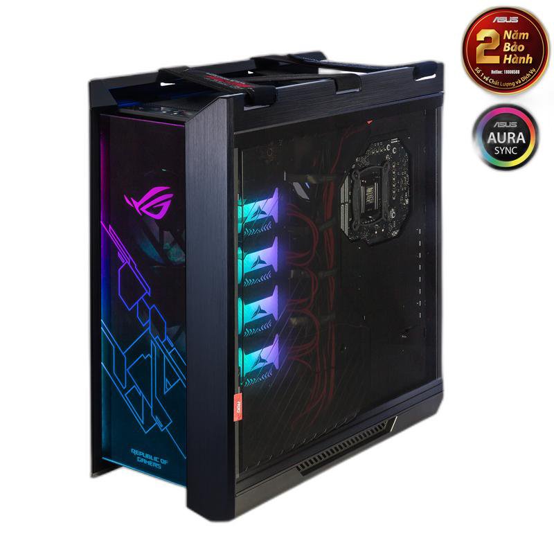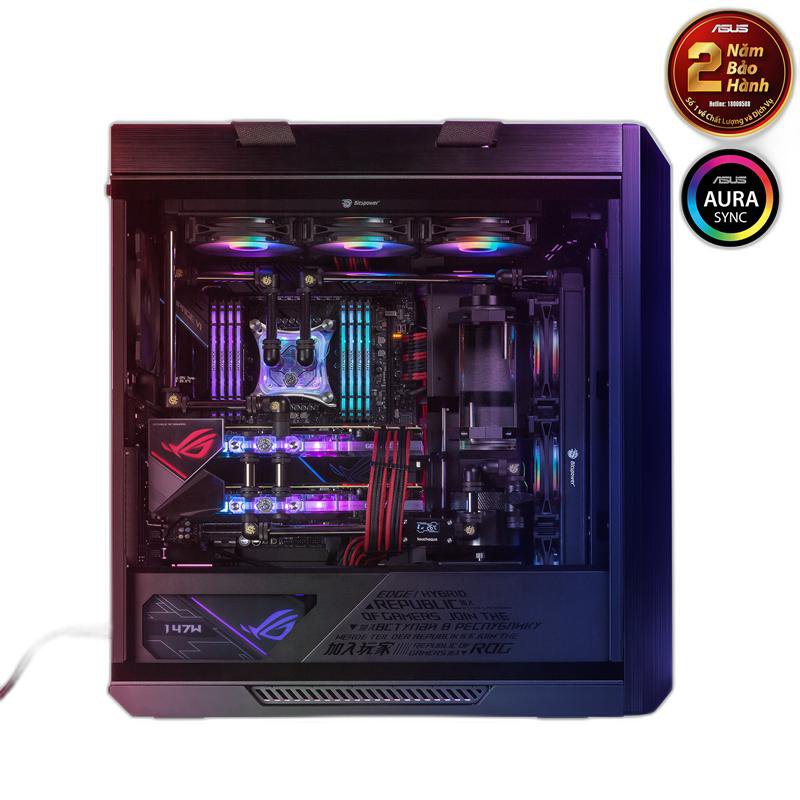 Vỏ case ASUS ROG Strix Helios GX601 dạng mid-tower với kính cường lực, khung nhôm, giá đỡ GPU, hỗ trợ lắp radiator tản nhiệt nước 420mm và Aura Sync.
