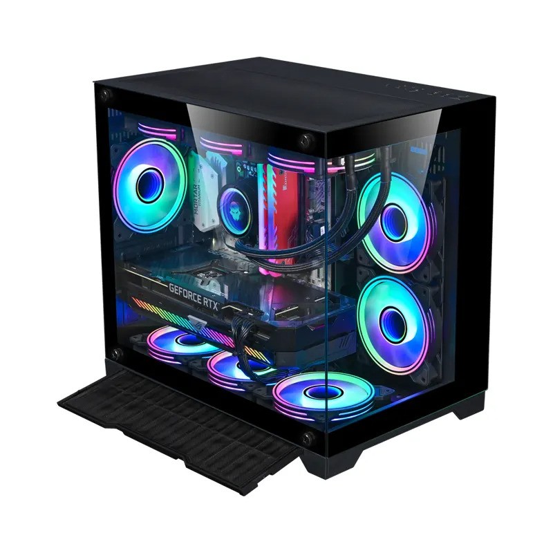 Mặt bên trái của vỏ case được làm bằng kính cường lực, cho phép người dùng có thể quan sát được linh kiện bên trong của máy tính và tận hưởng trải nghiệm tuyệt vời của đèn LED RGB bên trong.