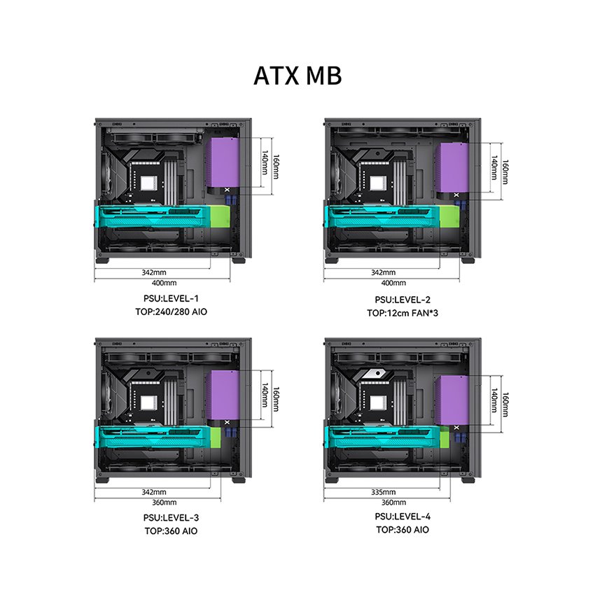 Tối ưu hóa lưu thông khí với không gian rộng rãi, hỗ trợ lắp đặt hệ thống tản nhiệt nước 360mm ở cả mặt trước và mặt trên.