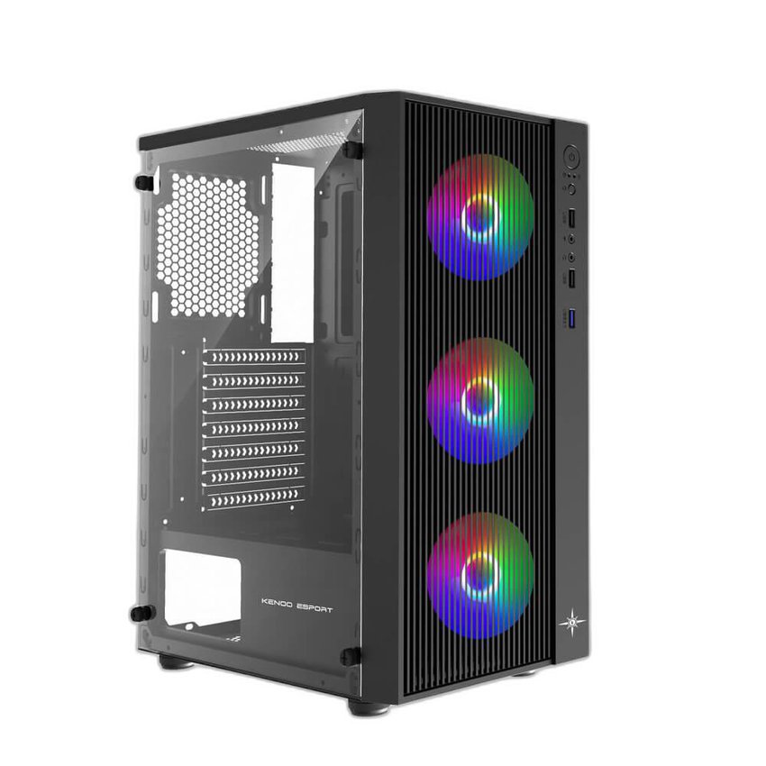 Vỏ case KENOO ESPORT AF13 - 3F - Mầu Đen (ATX/ 3 fan RGB)