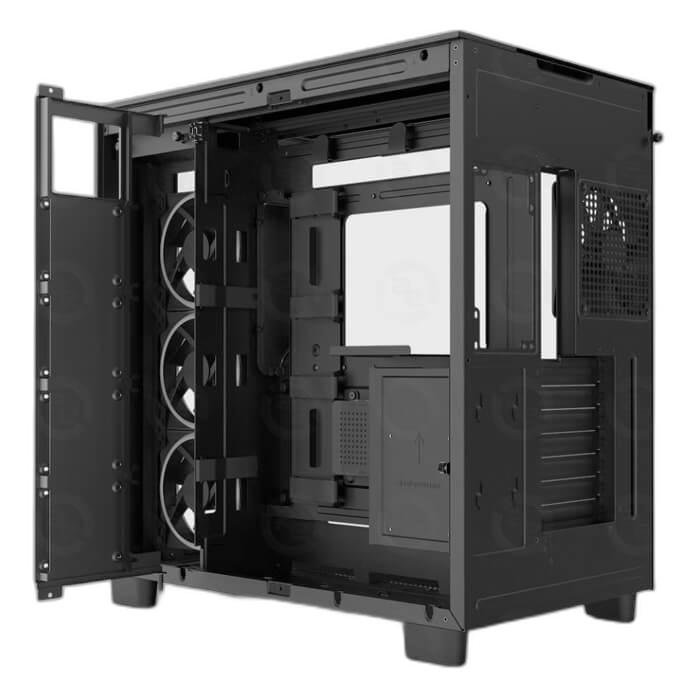 Dễ dàng tùy biến và lắp đặt theo style cá nhân, NZXT H9 Elite cho phép người dùng trưng ra tất cả vẻ đẹp của linh kiện ở phần lắp đặt ở buồng trước, còn lại phần PSU, các ổ SSD/HDD 2.5 Inch hoặc 3.5 inch đều được lắp đặt kín đáo ở buồng sau, cũng như việc đi dây dễ dàng hơn và kín đáo hơn ở buồng sau
