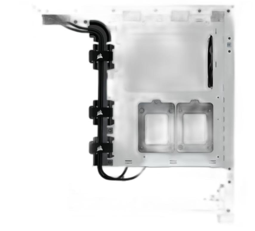 Được trang bị hai quạt CORSAIR 120mm AirGuide, sử dụng cánh gạt chống xoáy giúp tập trung luồng không khí và tăng cường khả năng làm mát.